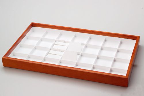 Couvette in legno 24x42cm con allestimeno interno in similpelle bianca 28 caselle 4,5x4,5cm